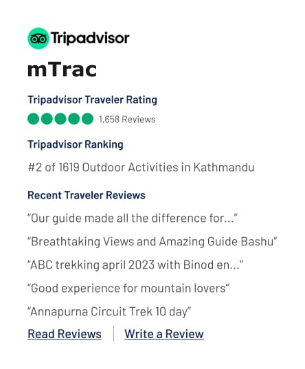 Thank you mTrac for arranging an amazing trip. The whole trip went very smoothly and we all had our best holiday ever. The trek was the highlight and we had the best guides and the staff at all the lodges were great. The trip could not have been better.